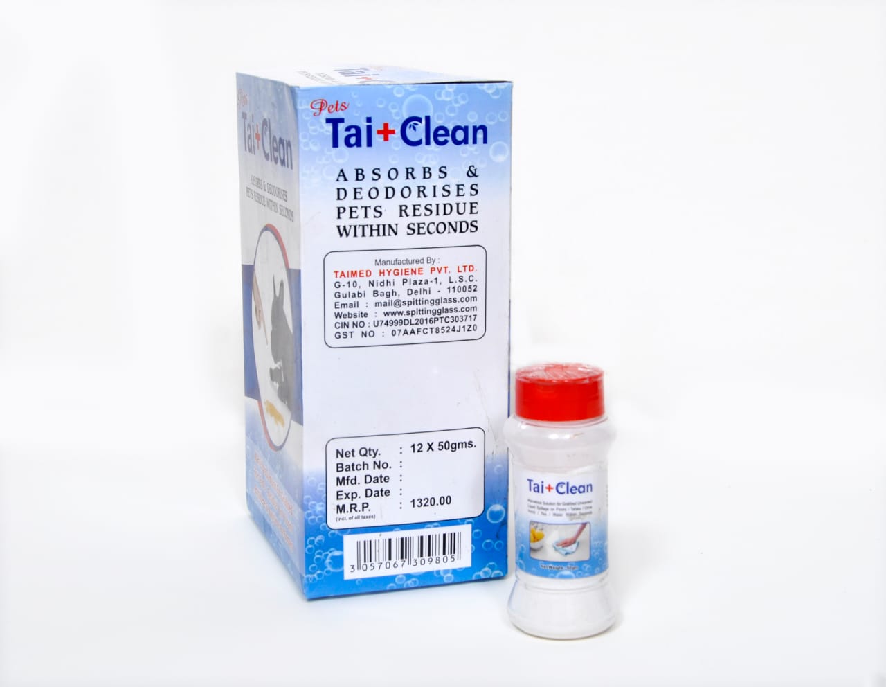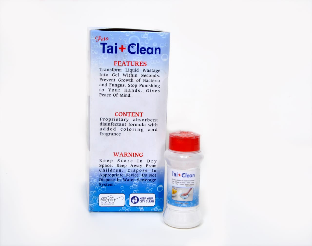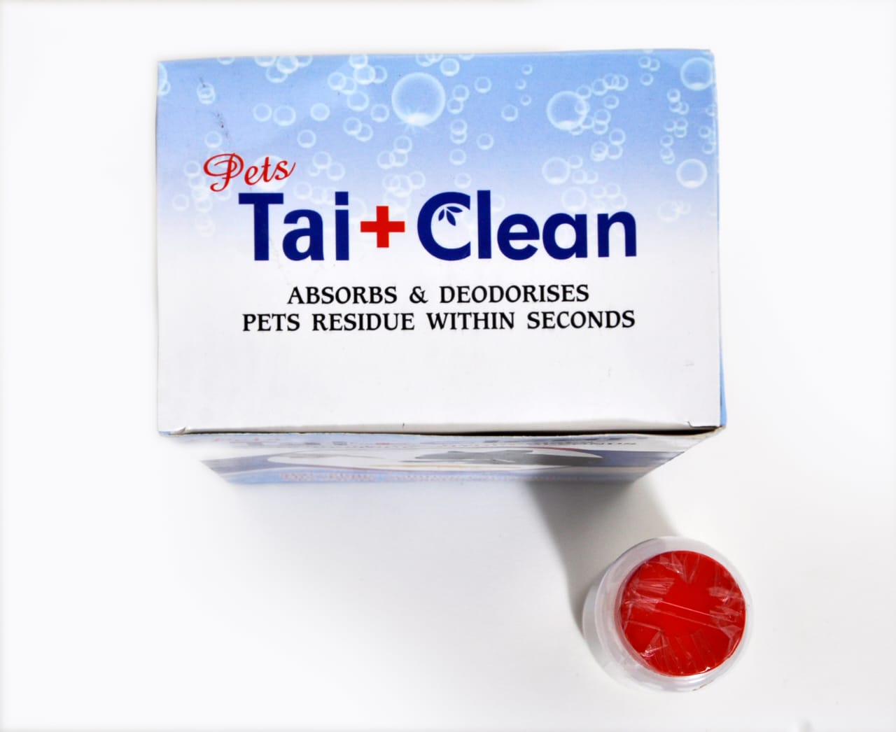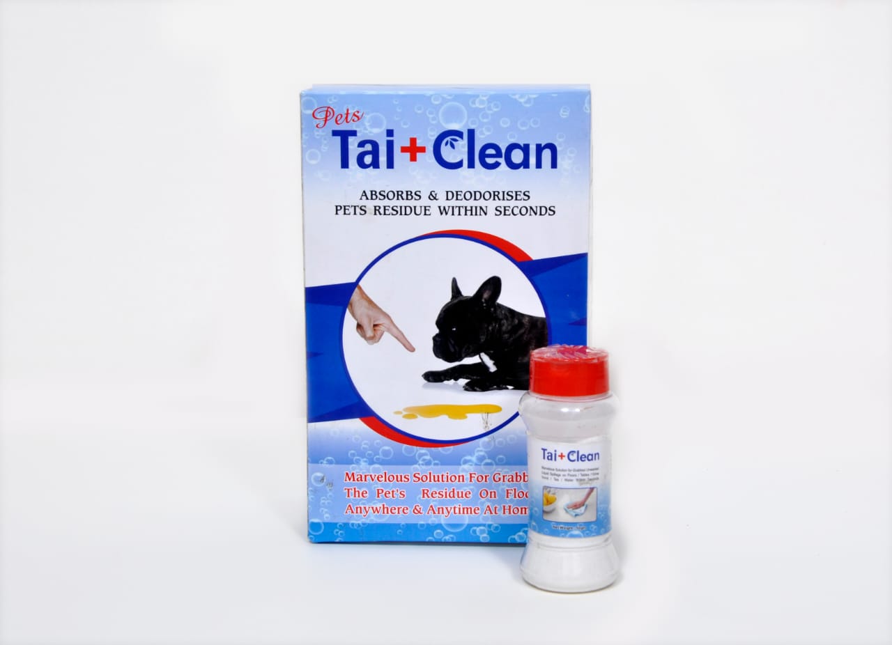 Tai+Clean is a fast-acting pet residue absorbing powder that instantly soaks pet pee or spills and removes bad odour. Suitable for all floor types, non-toxic, and perfect for daily use.